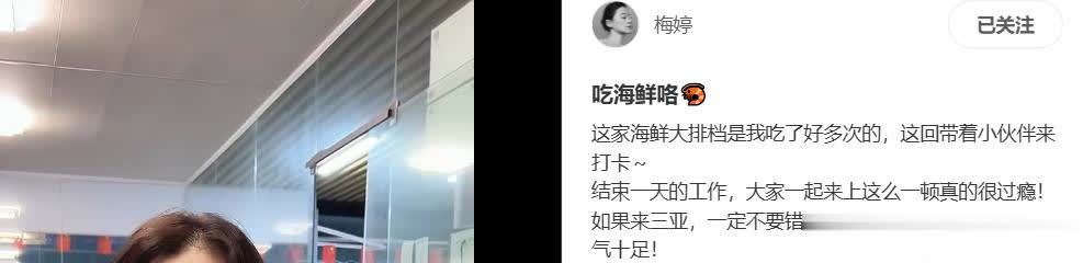 近日,海南三亚的海鲜大排档热闹非凡,一群人围坐在桌前,对着热气腾腾的香辣小青龙和避风塘皮皮虾大快朵颐,带头的正是实力派女星梅婷!